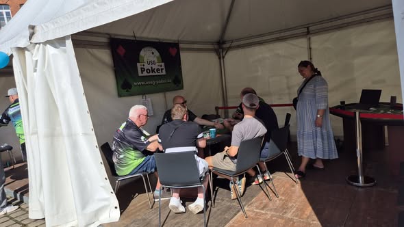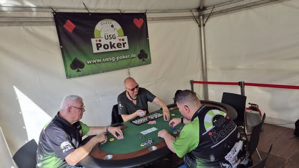 Unser Team war stark vertreten: Der Concierge übernahm als Floorman die Organisation, lud Gäste zum Mitspielen ein und behielt den Überblick im und vor dem Pavillon. Böser Mann leitete als Chef-Dealer die Spiele und erklärte geduldig die Regeln. Unterstützt wurde er von Riu Yin, der ebenfalls als Spieler und Dealer aktiv war und zugleich einen Löwenanteil der Promo mit gestaltet hat. Ob die Leute an den Tisch bringen oder unseren WhatsApp Kanal anpreisen. Riu Yin sorgte dafür das Neugier geweckt wurde. Paulchen trat als Spieler an und konnte durch starkes Spiel und geschickte Strategien seinen Chipstack im Laufe des Tages stetig ausbauen – ein Highlight für viele Zuschauer.
